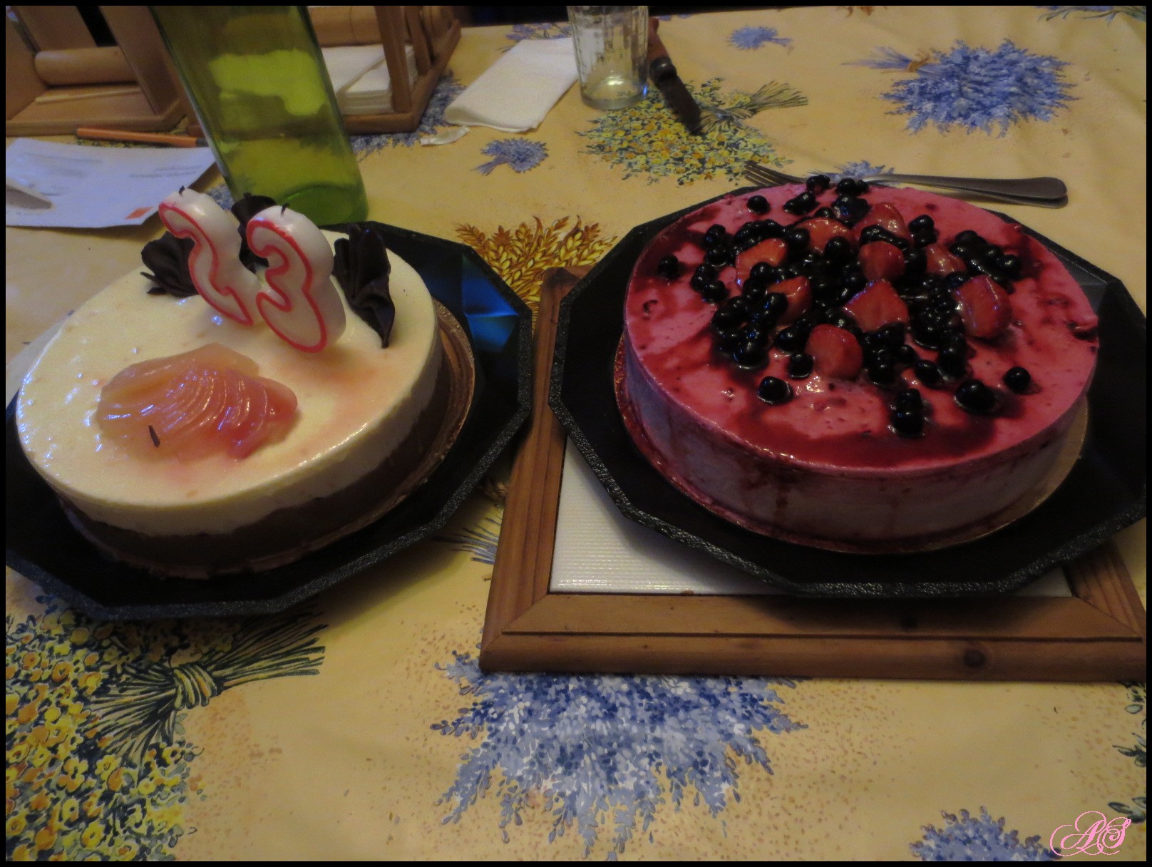 Une très belle attention qui marquera cet anniversaire... Moi, en tous cas, cela me touche beaucoup. Tes fils sont gentils mais avec la maman qu'ils ont, ce n'est pas étonnant et je présume que ton mari doit être adorable aussi. De biens jolies douceurs pour célébrer cet anniversaire... Très appétissantes aussi. Nous, nous avons fait un petit tour dans un resto sympa à Orange avant-hier soir et hier midi, nous avons pique-niqué et j'avais acheté un succès aux noix pour l'anniversaire de Sylviane et nous l'avons dégusté au bord de l'Ardèche... Sans mettre de bougies... Mdr... Tout le monde en maillot de bain sortant de l'eau, et nous avec des bougies sur un gâteau... On aurait été vite repérés !!! Ma belle-fille, c'est un poisson dans l'eau et je sais combien elle aime faire du canoë alors c'était ça son cadeau avec, pour lui faire encore plus plaisir, quelques petits vêtements car à trente ans, c'est normal de vouloir porter de jolis habits. Marc, lui, ce sera lundi : il n'est pas pressé d'avoir 60 ans ! Mdr... On retournera là-bas, dans l'Ardèche, véritable joyau français qui attire énormément de monde mais l'ambiance est formidable car les gens respectent la nature... L'Ardèche est une beauté, un véritable trésor...
