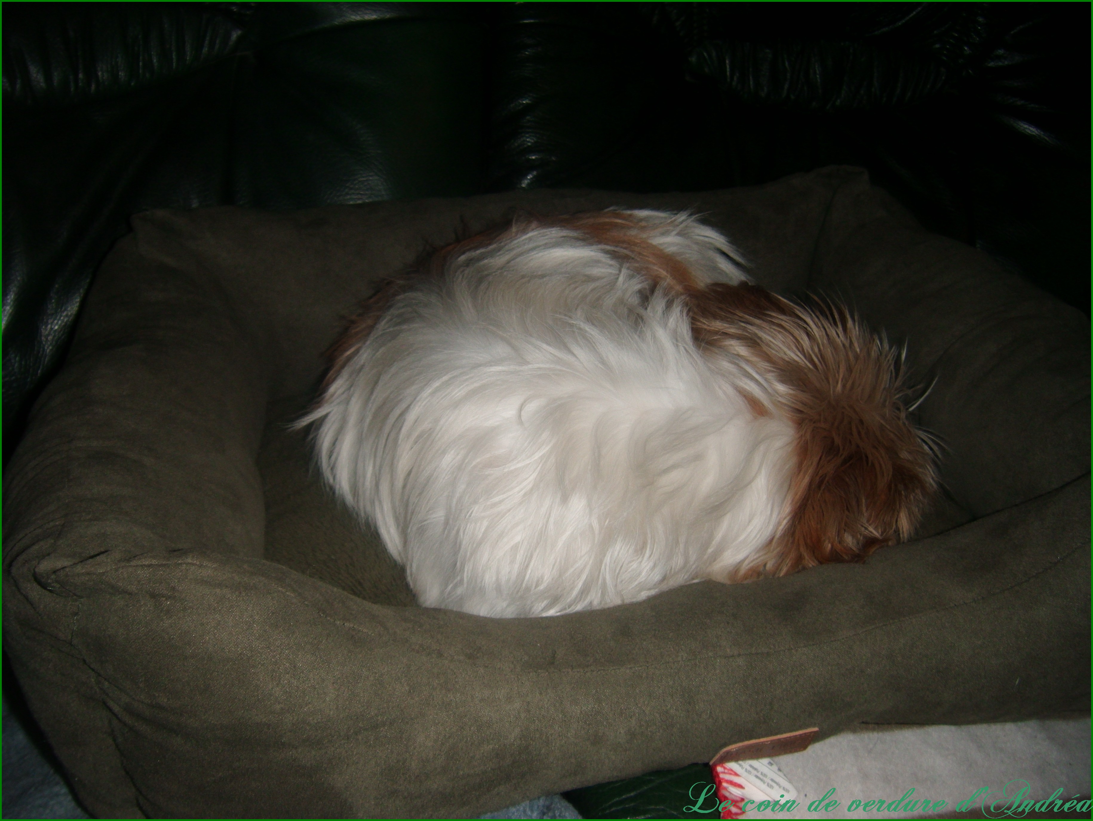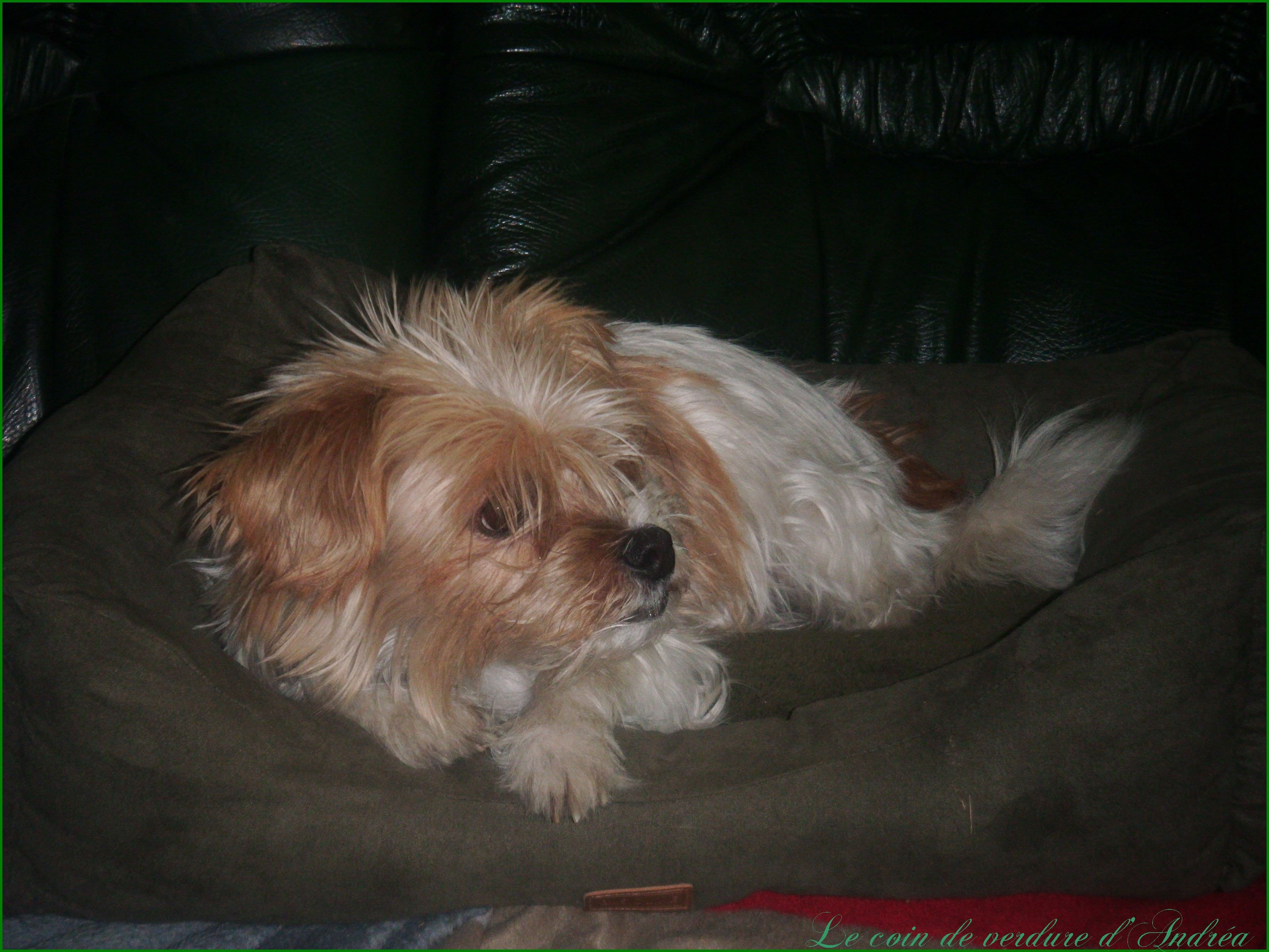 Bonsoir Andréa,Elle est toute mignonne, tu as raison de faire de bons souvenirs, ma cousine prend Snoopy en photo à chaque fois qu'elle le voir, mais il est rarement tranquille devant l'objectif, aujourd'hui il a fini de vider ce qu'il y avait dans le tigre, il ne reste que les carcasses des peluches, il avait un os en plastique qui couinait, il l'a crevé en croquant, mais il est adorable malgré tout comme la jolie Tara à qui je fais de doux bisous sur la truffe.