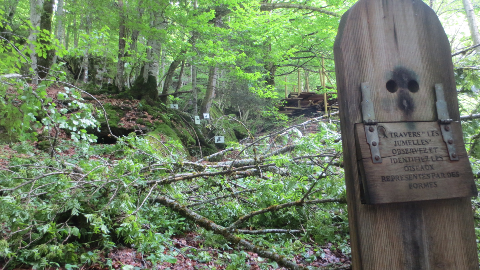 On regarde dans le trou et lon découvre les oiseaux qui fréquentent le lieux